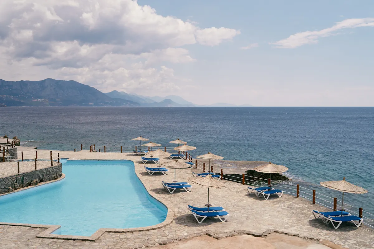 L’établissement s’étend directement sur une plage de sable fin privée, ce qui vous évite les désagréments des plages publiques bondées. Vous pourrez ainsi profiter de transats et parasols sans supplément, un avantage non négligeable pendant les mois d’été. D’ailleurs, consultez ici notre article sur les excursions au départ de Kinetta.
